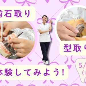 6/6SPオープンキャンパス 歯科衛生士科Ⅰ部(昼間部)希望の方のオープンキャンパスです🎵 ※歯科衛生士科Ⅱ部(夜間部)希望の方は、コチラから スペシャルオープンキャンバス!! ホワイトエッセンス様によるリップエステを体験!! 他にも […] ... 06 6月 10:00 AM - 12:00 PM