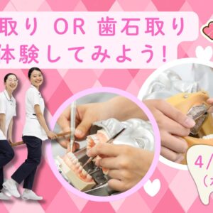 4/15オープンキャンパス(夜間開催) 歯科衛生士科Ⅱ部(夜間部)希望の方のオープンキャンパスです🎵 ※歯科衛生士科Ⅰ部(昼間部)希望の方は、コチラから 夜間で柔軟な学び方ができる! 両立のこと・お金のこと・入試・資格取得までばっちり! 受付: […] ... 15 4月 6:30 PM - 7:30 PM
